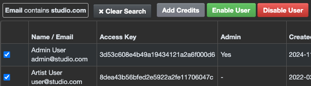 You may select multiple accounts to enable/disable or add/remove credits from the users: